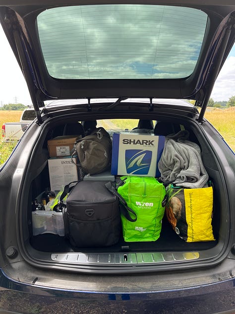 The Visa process went quite smoothly, which means it is something that needs to be carefully considered, post Brexit, as there are one or two hurdles to clear. You have to fill in online forms till your hands bleed and then attend an out sourced business centre in person at an address in Wandsworth, South London. But if you are patient and have all the paperwork correctly filled in, with copies (about 4-6 copies) of everything, then you may return in about ten days to collect your completed Visa. A visitor visa for moi and Paula went for an Entrepreneurial one, as she was going to keep working. With 12-month Visas now pasted into our passports we had a completion of the sale confirmed and a moving date of 4th July 2023. Cars loaded with our possessions of the past six months, we once again took the overnight ferry from Portsmouth to St. Malo. Paula in one normally aspirated car and me in the electric Tesla.