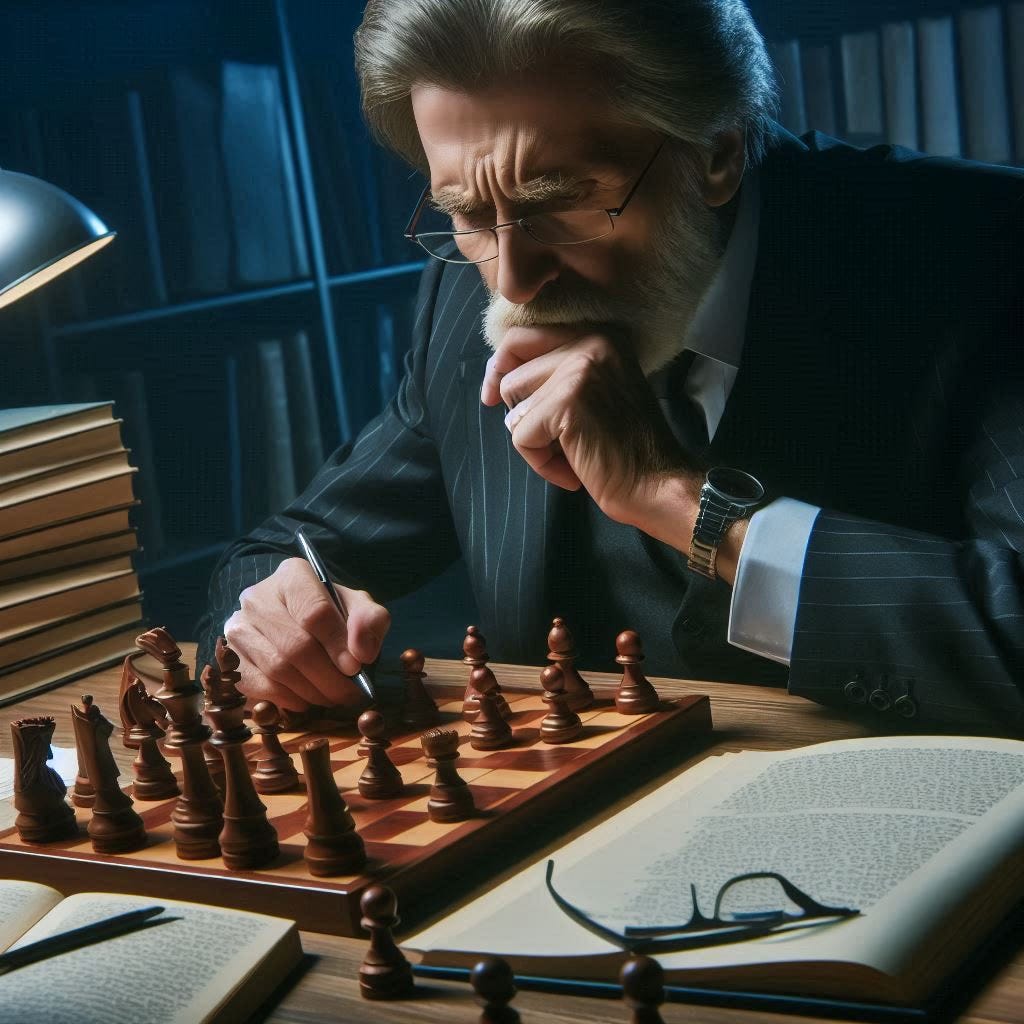 Back to this little poolside pencil jotted note, (ironically committed to a paper on 15th March 2024…Beware the Ides of March, as the Soothsayer in the Bard’s Julius Caesar said!), which will become my fourth published novel. Once again, I am changing genre to try and write something new and fresh, to my readers, but also to me. This new work has a convoluted plot line, with many characters to both introduce and fold into the manuscript. It is to be set in France, so plenty of opportunities to research and explore the locations I am thinking of. But, as I sat contemplating the necessary tension I am trying to bring to the story; I paused to consider that the writing was akin to playing a slow and methodical game of chess.